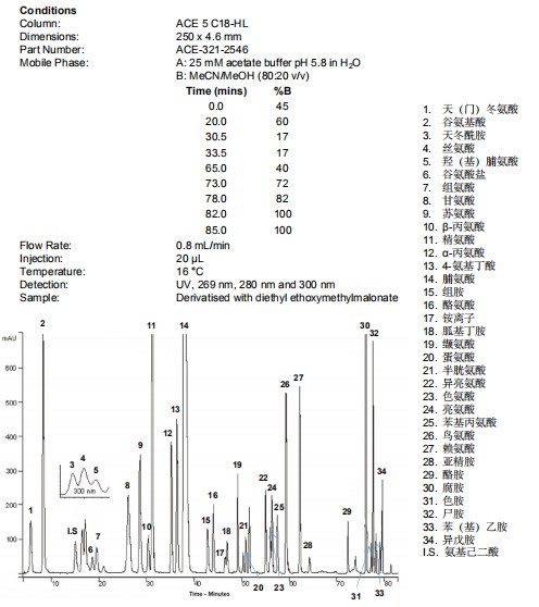 此為在C18中嵌入酰胺基團(tuán)的特色固定相,可以利用酰胺鍵增強(qiáng)大極性化合物的保留