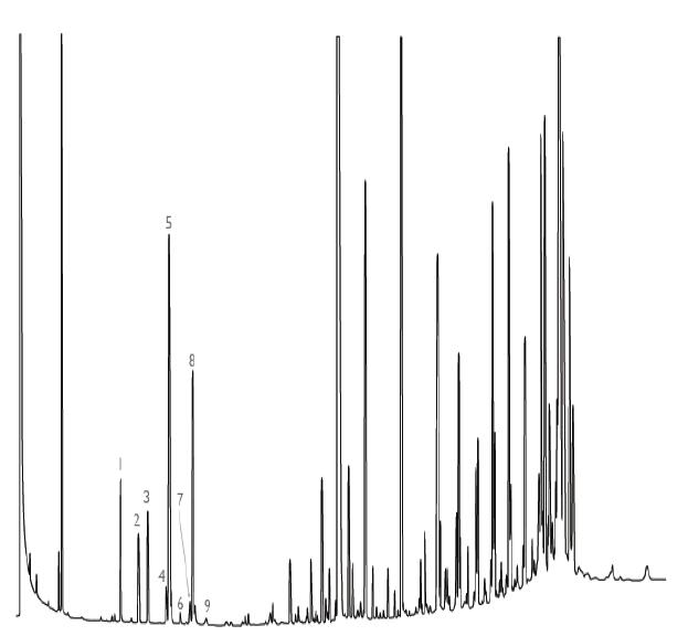 升溫程序:80 ℃ (1min), 20 ℃ /min, 140 ℃ , 5 ℃ /min, 335℃(等溫)