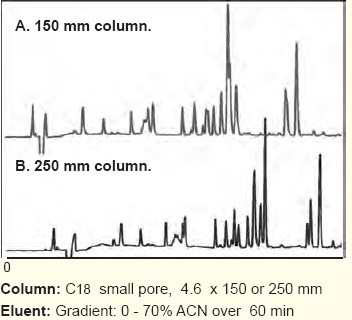 但是對于小分子多肽,往往長柱比短柱的分離度大,這點(diǎn)類似化學(xué)小分子。