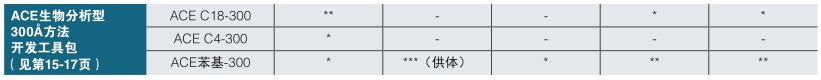 4,對于色譜柱固定相的選擇方面,ACT公司推出了生物分析方法開發(fā)包,主要提供三種固定相,C18-300, C4-300,Phenyl-300,提供三種不同的分離選擇性作為主流用柱。