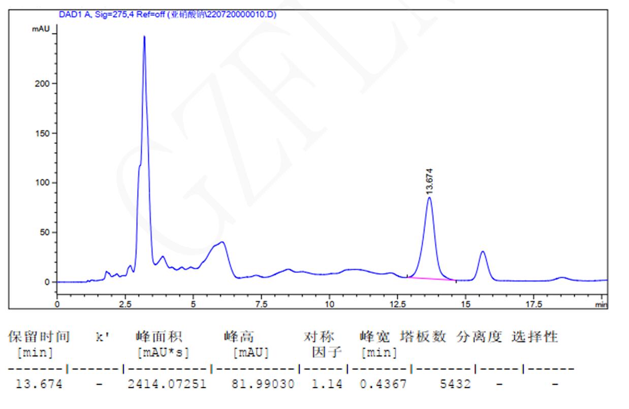 流動(dòng)相:甲醇:水=15:85 流速:1ml/min