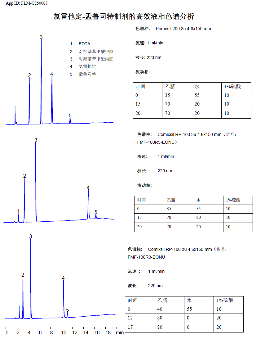App ID: FLM-C250007 氯雷他定-孟魯司特制劑的高效液相色譜分析