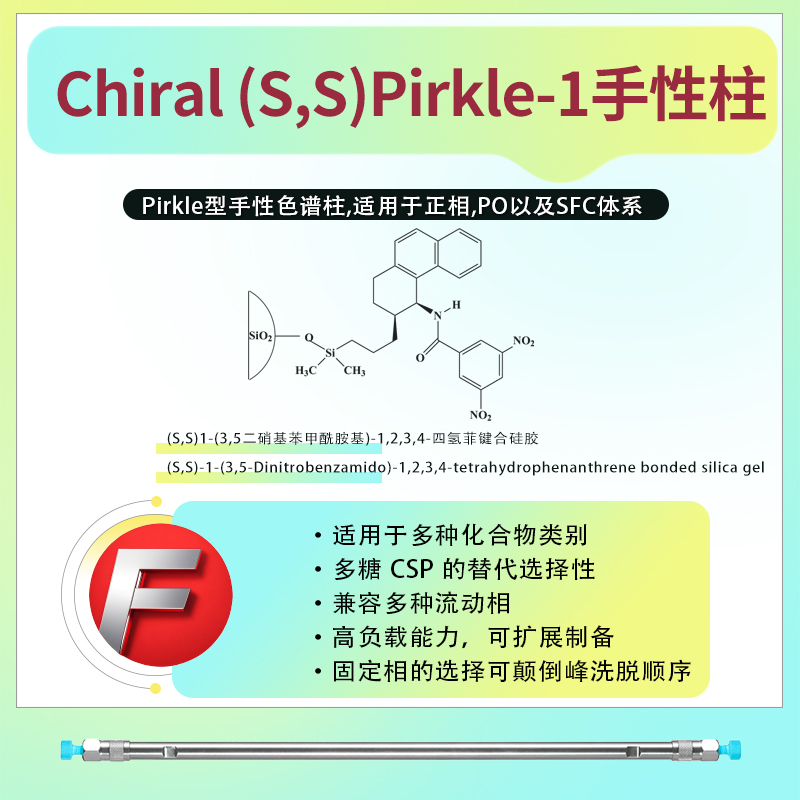 - Chiral (S,S)Pirkle-1 手性柱 Chiral (S,S)Pirkle-1 手性柱是一種具有手性識(shí)別特性的固相填充柱,主要用于對(duì)立體異構(gòu)體具有分離作用