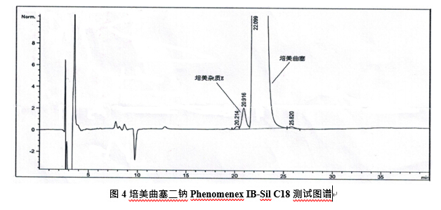據(jù)客戶反映,在用該類型色譜柱分析培美曲塞這個品種時,色譜柱耐用性很差,壽命短;另外,色譜峰的重現(xiàn)性也不是很好。