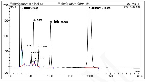 注:藥典規(guī)定氨氯地平理論板數(shù)應不低于3000。
