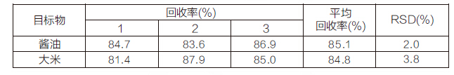 1、4.0 μg/kg 食品基質(zhì)中赭曲霉毒素的添加回收結(jié)果 表 1 4.0 μg/kg 食品基質(zhì)中赭曲霉毒素的添加回收結(jié)果
